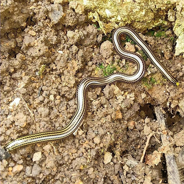 This 2016-described blindsnake is a colorful Andean valley endemic. It is a very small species as presently known, reaching to only around 14 cm in length with a slender cylindrical build. The head is barely different width from the neck and very short, rounded, and with only a slightly tapered snout. The tail is similarly short and blunt, only barely tapered just before the prominent terminal spine. Dorsal scale count is 196-205, scale row count 14 reduced to 10 caudally. Coloration is a distinctive set of 14 lengthwise stripes passing through the centers of each scale row and with serrated edges, split by bright cream-yellow stripes, reducing to 10 on the tail. A distinctive yellow blotch covers the upper rostral scale, as well as the tail tip with a broader ventral section. The belly is slightly paler but similarly striped. This species can be distinguished from its relatives by its low dorsal count, highly striped and contrasting pattern with serrated stripe edges, and broad contact between the front supralabial and supraocular scales.